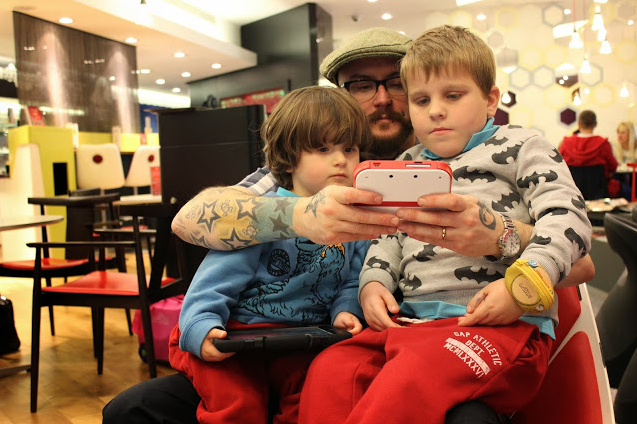 Nintendo will always be special to me and Seth, a few years back when we found out Opeie was on his way Mrs M fell very ill and was in and out of hospital through the pregnancy, I feared the worst and because of this me and Seth would spend a lot of our days hanging around the hospital waiting to see Mrs M. I decided to buy Seth a DS to keep him entertained, i did think at the time maybe he was a little to young for it but he was instantly hooked and within a week I had brought myself one and we would sit in the hospital cafe or under the huge weeping willow on the grounds playing together. I guess it kept our minds off what was going on inbetween visiting times. Our gaming sessions is something that has continued ever since, It kept us fully entertained during our recent long haul flight and we have all been happily playing Mario together earlier.